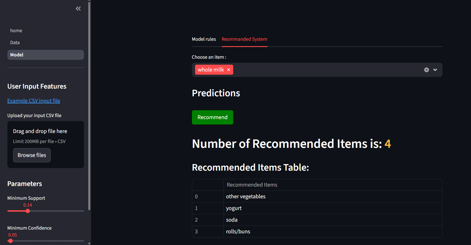 Deployed an interactive Streamlit app to explore association rules.